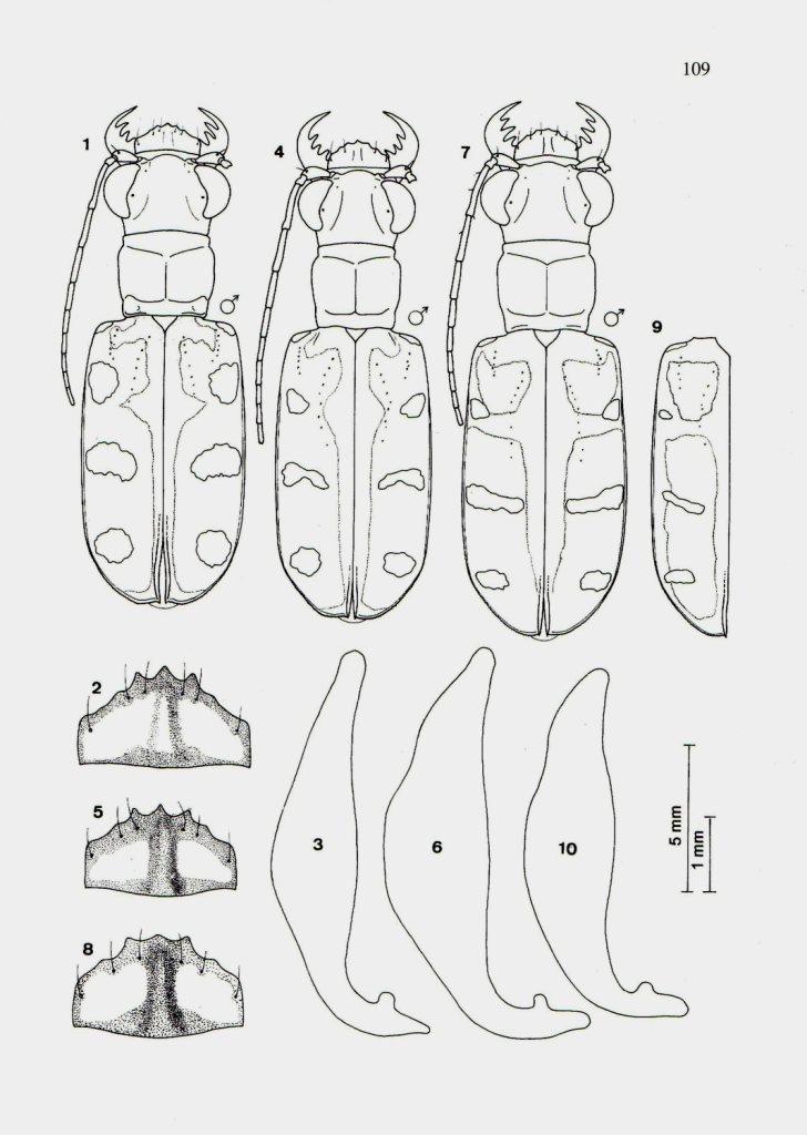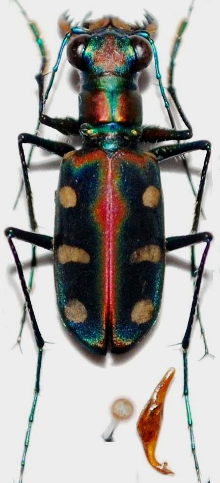 6) l'edeago in questi casi si presenta davvero abbastanza vistosamente differente nelle due specie (vedi "The tiger beetles of Thailand"), quindi un esame di quello potrebbe effettivamente dirimere la questione;
