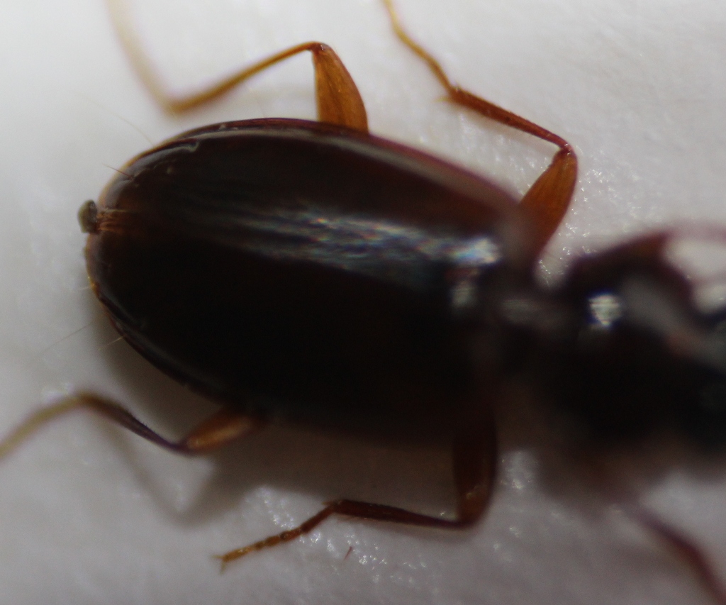 Ho trovato questo Trechus nello stesso ambiente delle Clivina e del Callistus: un campo abbastanza umido, in piena pianura, nei pressi del fiume Mella. Questa bestiolina รจ lunga 3-4 mm. E' possibile identificare la specie? Grazie in anticipo. |