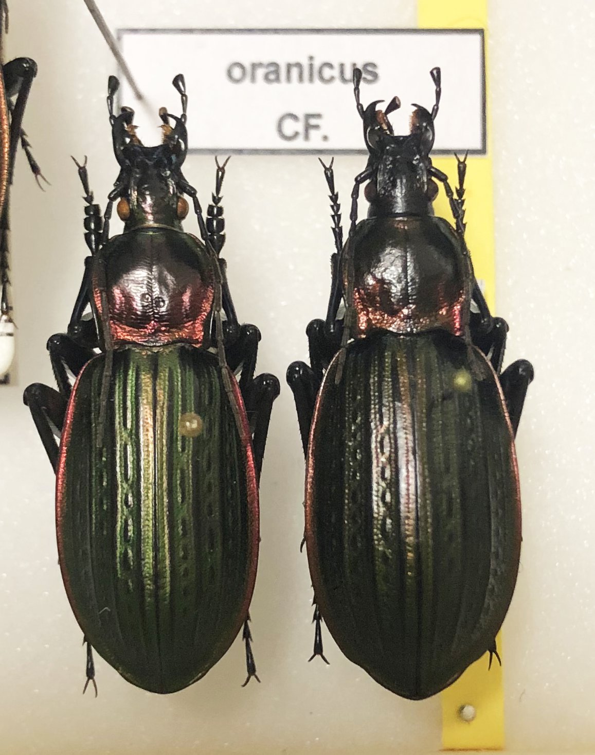 ssp. constantinus Kraatz, 1899 NE-Algeria:Constantine, Setif; N,CE-Tunisia; NW-Libya:Yafran; Sardinia, Corsica, Lampedusa=arborensis Krausse, 1908 Sardinia:Asuni =galloprovincialis Lapouge, 1910 S-France:Var:Muy; introduced ~relictus Krausse, 1910, nec Semenov, 1888 S-France:Les Maures; introduced =corsicanus Lapouge, 1913 Corsica =lampedusae Born, 1925 Lampedusa Island ~bodemeyeri Kolbe, 1928, nec Lapouge, 1924 Tunisia:Ain-Draham nr.Tebarca(=Tebarka) =mirei Breuning, 1975 NE-Algeria:Setif:Djebel Babor Massifssp. cychrisans Lapouge, 1899 NW-Algeria:Oran env. ?Maghnia~marginatus Lallemant, 1868, nec Linné, 1758 Oran =oranicus Csiki, 1927; nom.pro marginatus Lallemant NW-Algeria:Oranssp. macilentus Lapouge, 1899, nec Olivier, 1795; S-Spain:Alicante, Murcia; Baleares=ferrugatus Lapouge, 1899 Baleares =balearicus Lapouge, 1913 Baleares