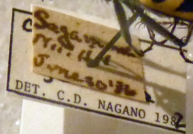 Apparentemente la specie era già stata identificata ma l'identificazione non è visibile poiché il nome è nascosto dall'altra etichetta.