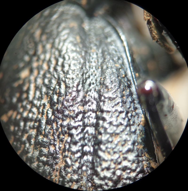 Sarebbe stato interessante contare le strie elitrali per capire se siano presenti strie ulteriori oppure se si sia verificato un allargamento di quella/e già esistenti. Purtroppo temo che in questa specie sia impossibile distinguerle.