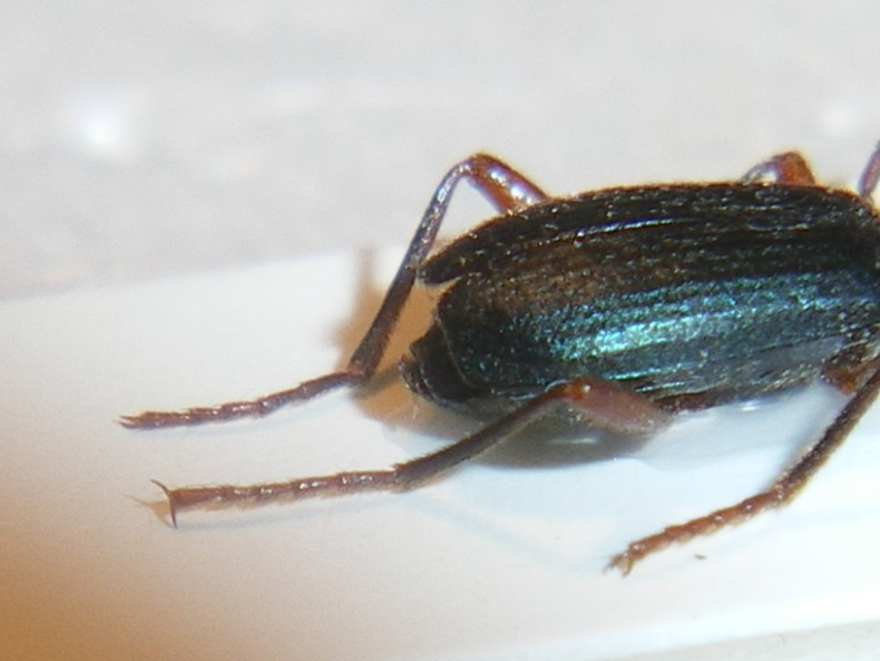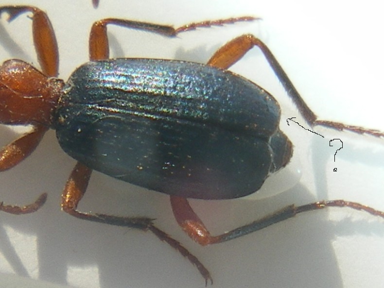 Se fosse possibile Giacomo fai una foto dell'apice delle elitre visto dal fianco, oppure guarda anche solo al binoculare dove indico con la freccia il bordo membranoso, perchè se sono presenti delle setole per mè è il B. crepitans, altrimenti ha ragione Maurizio è il B. glabratus cosa molto più probabile.