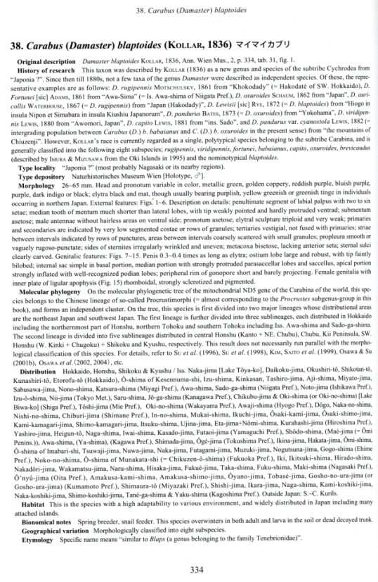 P.S. allego la prima pagina dedicata a questa specie del libro "The Carabus of Japan" di Y. Imura e K. Mizusawa del 2013; forse può aiutare a capire ancora meglio la situazione.