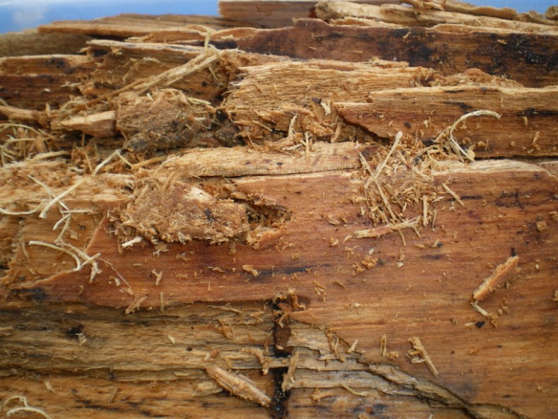 Ecco una sezione di legno (si sfaldava facilmente) con una galleria a lato...