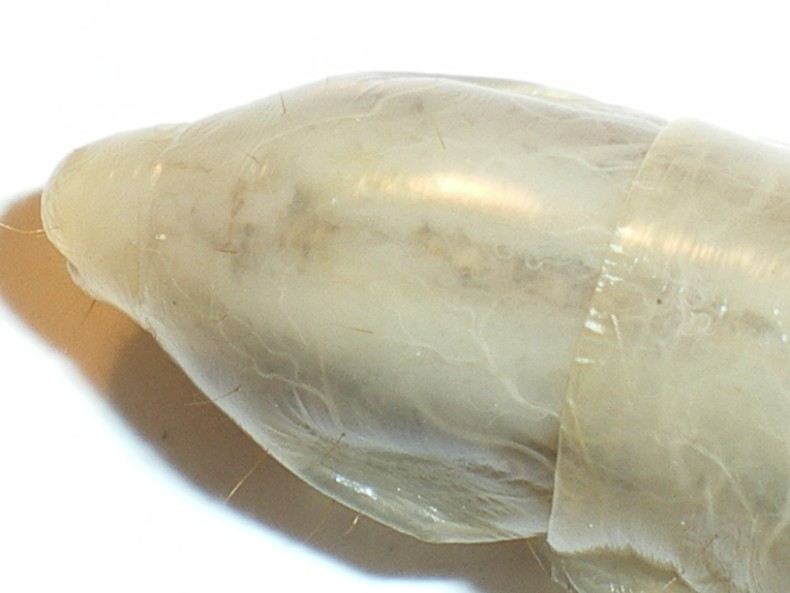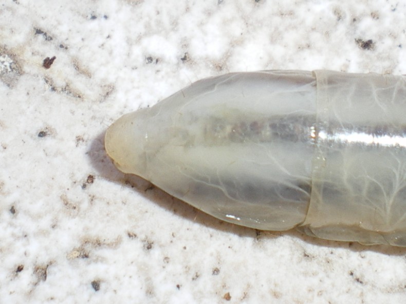 La larva in oggetto delle foto precedenti è morta (da un pezzo) e sott'alcool...