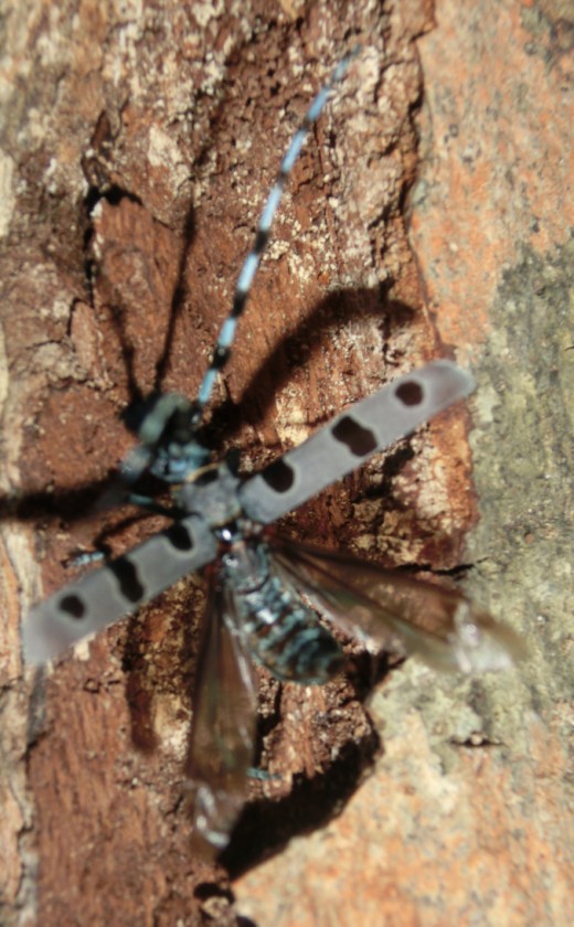 Che si sia molto rarefatta in seguito all'eccessivo sfruttamento dei boschi, quello non lo metto certo in dubbio, tanto che io le trovo quasi sempre in boschi che non vengono ceduati o tagliati regolarmente, o almeno dove vi siano alcune piante vecchie superstiti. Mentre ci sono interi altri boschi, tutte fustaie giovani, dove non ne ho mai vista una. Nel caso di questa specie, quando c'è, è facile da individuare, a differenza di altre, visto che è diurna, e quando è sui tronchi si vede molto facilmente. L'unico problema è che credo abbia una fenologia piuttosto breve, per cui basta poco per capitare prima o dopo il periodo giusto, e non vederne neanche una.