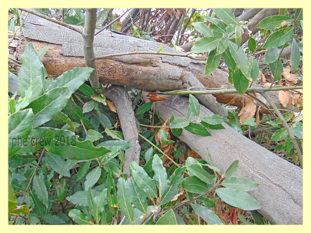 ...ciao a tutti, oggi ho trovato il tempo di fare delle foto per scoprire finalmente la pianta ospite incriminata :lol: ... io mi butterei su Alloro, anche se sembra, per la tortuosità dei rami, più un Ficus. Nella prima foto si vede bene il tronco caduto circondato da gettate dalle foglie ancora verdi (foto 1) che passa sotto ad un altro tronco più vecchio (foto 2) tempestato di fori di chissà quanti Coleotteri ed Imenotteri e con la corteccia che incomincia a cedere. Il tronco si fa strada tra l' erba e i rovi in tutta la sua lunghezza (foto 3 e 4) e finisce con un groviglio di rami torti attaccati da muffa con un' inusuale inversione ad U (foto 5). Infine ho fotografato un primo piano delle foglie verdi delle gettate che si trovavano alla base del tronco caduto (foto 6) e sembrano proprio di Alloro. Bene...un ultima cosa...ho visto che l' albero era abbastanza alto, quali sono di norma le dimensioni dell' Alloro ? :birra:
