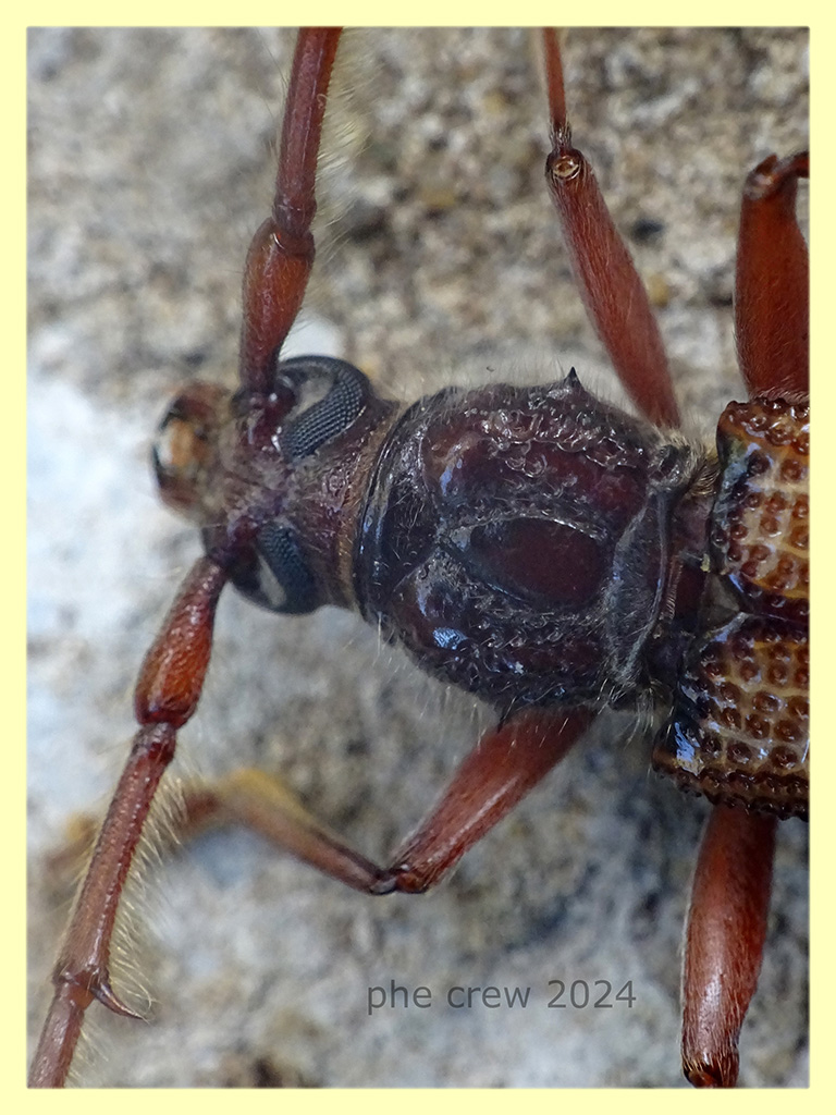 ...dai peli abbondanti sulle antenne e una densa fila di spine forti sul lato frontodorsale dei femori posteriori, direi proprio Phoracanta recurva, Trovata ferma su di un sasso vicino ad un Eucalipto. p.s. ...sotto il sasso invece c' era una Testacella scutulum ! ![]() |