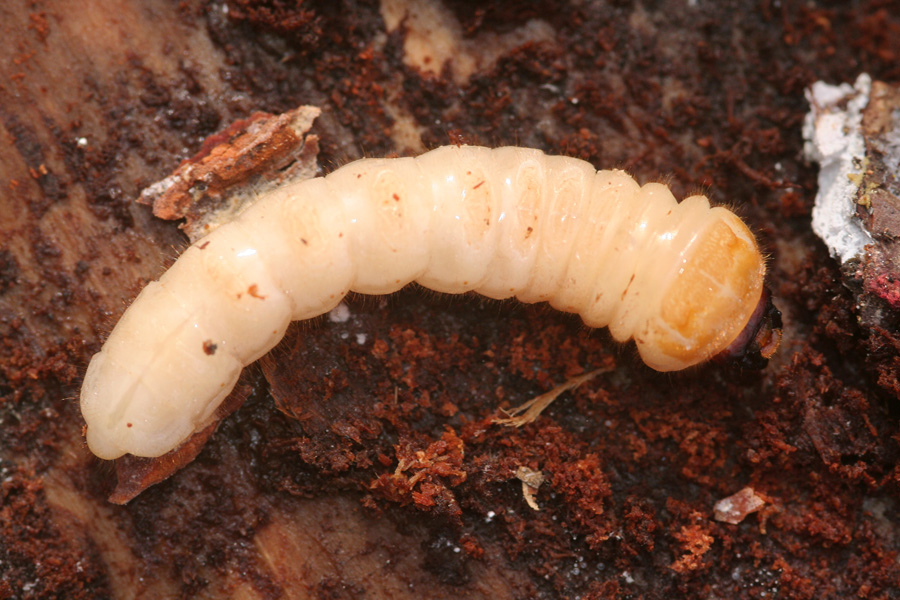 Ciao Calogero, vista così questa larva è difficile. Sono d'accordo con Gianfranco che la testa non pare obliqua rispetto al corpo anche se a ben guardare mi pare si riconosca il "becco" dei Laminae. Arhopalus lo escludo sicuramente per la mancanza di spine. Sarebbe d'aiuto avere una foto, se possibile, delle gallerie e della rosura dove stavano. Spesso è di aiuto. A naso andrei su Morimus però.... Ciao Pierpaolo |