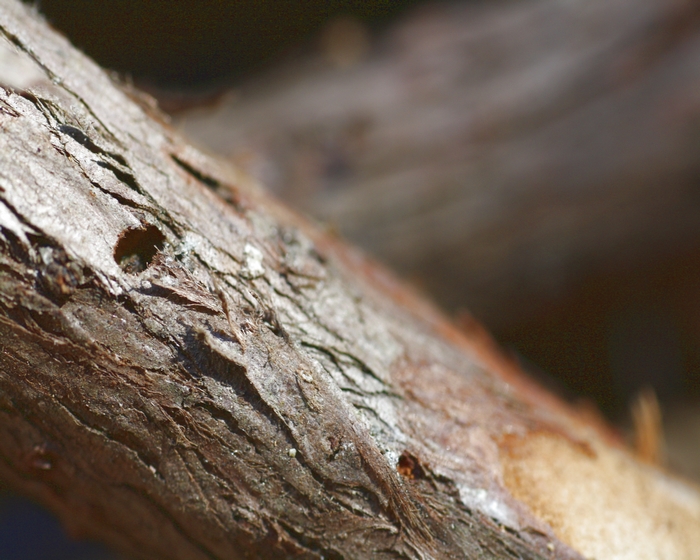 Terzo step: ci imbattiamo in un tappo di rosura: al suo interno si annida la loggia pupale, dove la larva si è sviluppata in adulto a fine estate e dove attende di sfarfallare con i primi caldi primaverili.