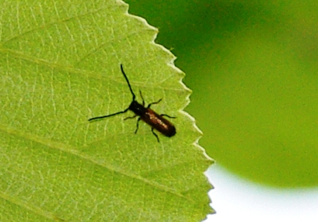 Premessa: sabato scorso, su un passo appenninico romagnolo, mi ero fermato per dare un'occhiata ad un albero in fiore. Era un sorbo montano. Ho trovato un'Hoplia su una delle infiorescenze e, mentre guardavo dal basso, ho notato sulla pagina inferiore di una delle foglie un esserino che mi sembrava familiare: era un Tetrops praeustus. Sono riuscito a prenderlo, ma non ne ho visti altri.