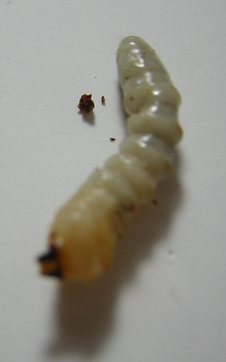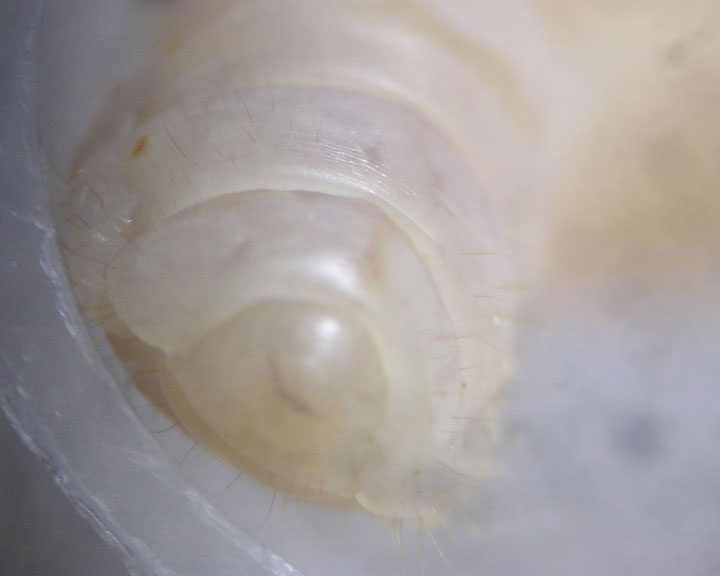 Perdonatemi per le foto bruttissime :oops: ... con questa larva in movimento non sono riuscito a fare di meglio (infatti non so come faccia Giacomo a fare quelle belle foto a fuoco :roll: ). Sembrerebbe un Lamiino, non possiede zampe visibili, ma da quello che visto neppure gli urogonfi (ma potrebbero essere nascosti dietro la piega del penultimo urite). Inutile dirvi che la fretta mi ha giocato un brutto scherzo, e che ho gia rinserito le larve in appositi fori (rigorosamente sotto corteccia) fatti con il trapano :( . Potrebbe essere Acanthocinus sp.? (sicuramente non sono di Rhagium)