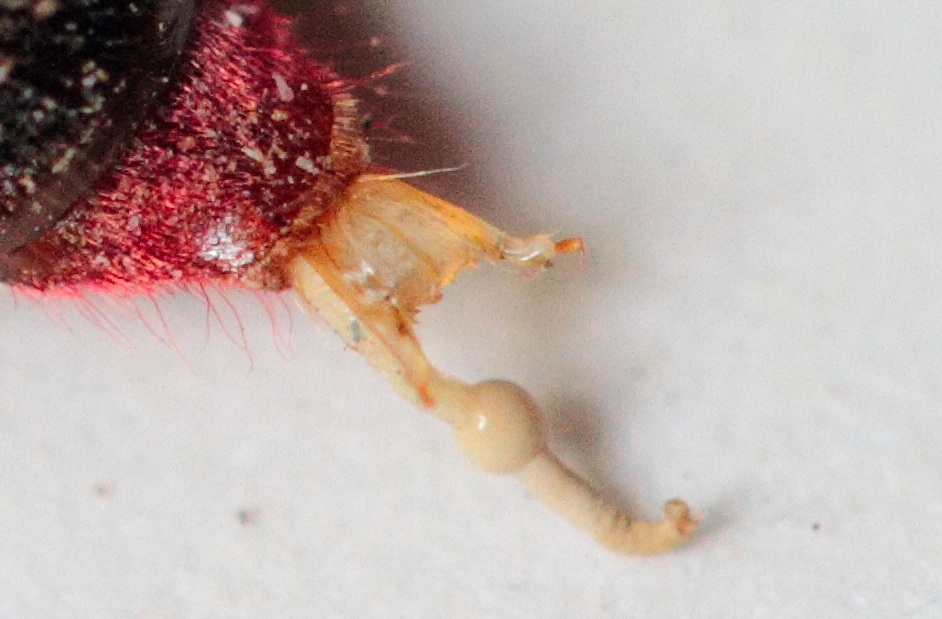 Un' ulteriore domanda ma entrambi sono in genitali maschili? Prima di scattare la seconda foto (quella dove sta con le zampe all'aria) dal "tubicino" in primo piano (chiedo scusa per il linguaggio non propriamente scientifico) ha espulso quelle che a me sono sembrate feci. L'altro organo ha alla sommità come due antennine. Allego altre foto.