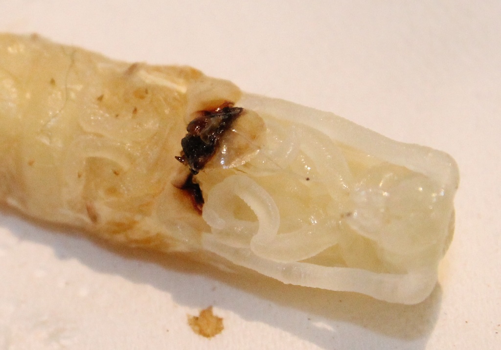 Insieme alle larve ho estratto anche questre tre pupe, delle quali una abbastanza deformata e una molto molto magra, tutte e tre ad ogni modo sono vive e si muovono, come posso comportarmi con loro :roll: insieme ho trovato anche una piccola pupa, suppongo di Stictoleptura scutellata