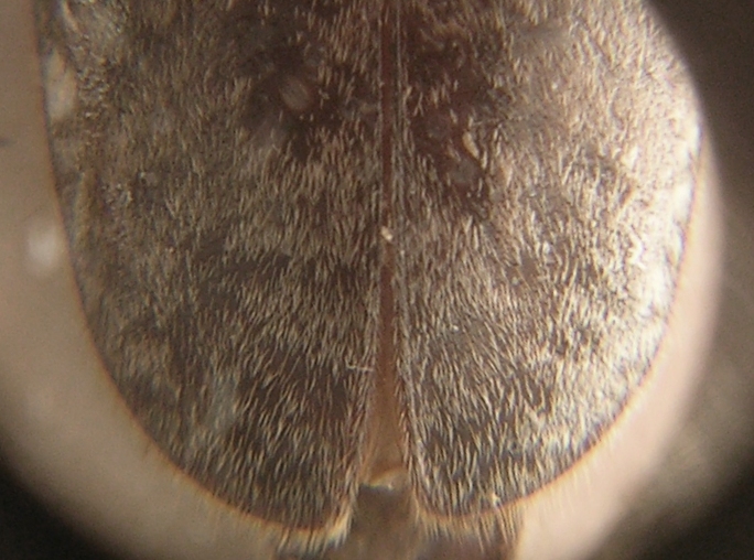 Cominciamo dalle elitre, che sono di colore scuro uniforme e coperte a chiazze da una corta pubescenza gialliccia.