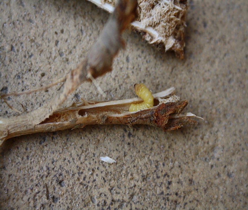 Nell'immagine successiva possiamo notare la parte aerea del fusto in cui la larva ha iniziato a nutrirsi: