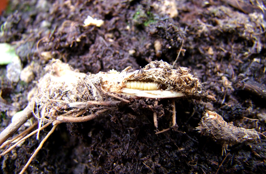 ecco una piccola sequenza di immagini relative alle fasi di sviluppo di un coleottero piuttosto diffuso e comune, più semplice da trovare in primavera dal vivo che non in inverno all'interno della sua celletta ricavata nelle le radici della pianta ospite, in questo caso l'Achillea millefolium. Le dimensioni sono alquanto ridotte:6-8 mm. l'adulto e la celletta anche solo 1 cm. L'altezza della pianta è circa cm.55-70.