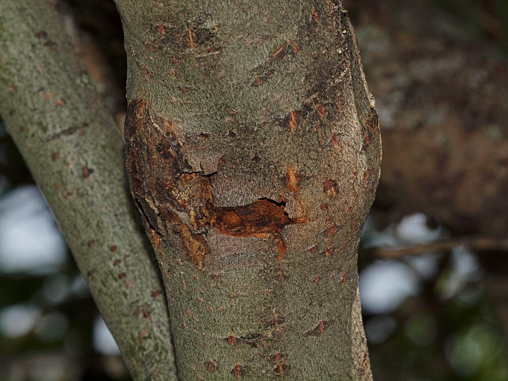Ho anche trovato delle tracce vecchie, quasi scomparse per la ricrescita, su rami ormai morti o morenti, ed in cui, non lontano, c'era il foro d'uscita della Saperda.