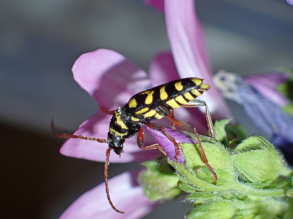 Plagionotus scalaris (Brullé, 1832) Sono quasi 50 anni che cerco insetti (49, per l'esattezza) e questa specie non mi era mai capitato di trovarla, come scrivevo anche pochi giorni fa, in questa discussione, in seguito alla quale avevo anche pensato, appena libero dagli impegni lavorativi/familiari, di farmi un giretto nella campagna a Nord di Roma, a pochi km da casa mia, per vedere se per caso riuscivo a trovarne uno su qualche fiore di malva. Invece non è stato necessario. Stamattina, uscito da scuola, dopo le prime ore di lezione, per andare a fare l'ultima ora in succursale, passando per il prataccio dietro casa, ne ho trovati due in bella vista (si vedono tranquillamente a 10 m di distanza) appollaiati su fiori di malva selvatica lungo il sentiero che stavo percorrendo. Peccato che non avessi il tempo di controllare tutto il campo. Magari è stato solo un caso, e non ne vedrò mai più, ma essendo la terza segnalazione per Roma e dintorni in meno di un anno, credo che questa specie tipicamente meridionale stia diventando decisamente più frequente che in passato, qui nel Lazio. Effetto del cambiamento climatico? Lazio, Roma, Quartiere Montesacro/Talenti, 18.V.2017, M. Gigli legit |