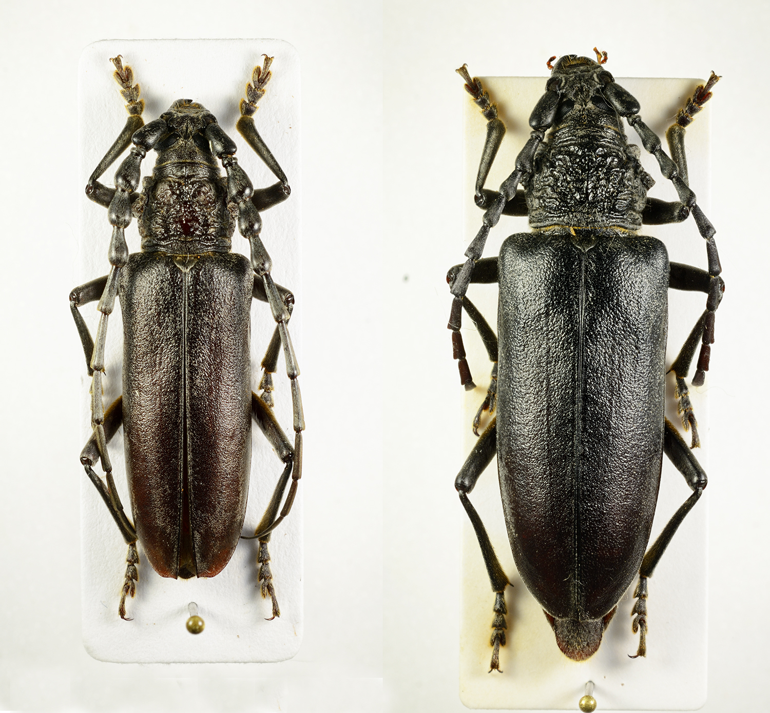 Visto che a quanto pare è un genere ostico, metto una chiave per le specie europee del genere Cerambyx con le foto come veniva suggerito. Le foto sono fatte senza troppi amenicoli, a scopo scientifico, non ho unformato lo sfondo a tutte e curato troppo la luce, però secondo me sono molto chiare. Prima che qualcuno commenti che non sono tutte le specie di Cerambyx anticipo dicendo che ci sarebbe, piuttosto raro, anche il Cerambyx dux in Bulgaria e Macedonia, però non ce l'ho in collezione, quindi non sapevo come fare la foto! :to: Ce ne sono sul forum ma di identificazione dubbia e quindi ho preferito aspettare a metterle.