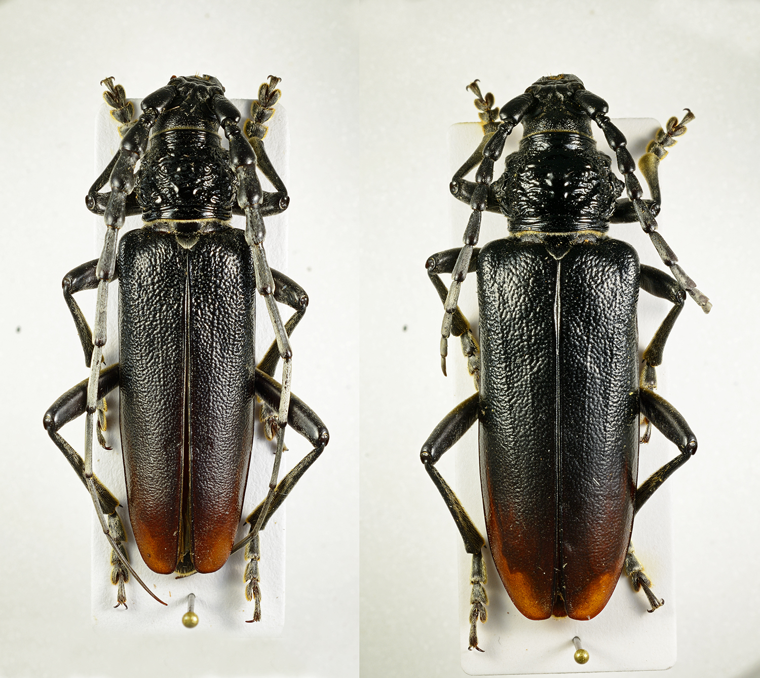 4 antenne nel maschio molto più lunghe del corpo, con articoli non molto globosi, apice elitrale con evidente spina…………..cerdo Linnaeus