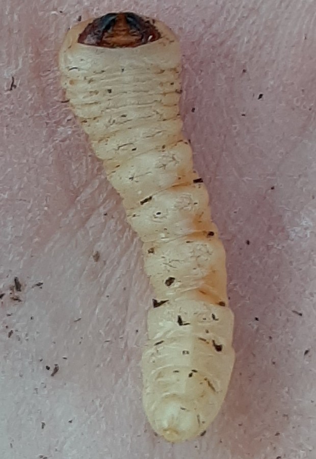 Oggi ho trovato questa larva apoda scortecciando una quercia, misura circa 20mm.