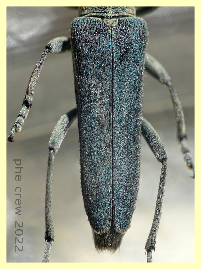 ...se non mi son sbagliato con qualche Phytoecia sp....dovrebbe essere Opsilia coerulescens. Misura 11,5 mm., trovata morta in una pozzanghera di zolfo. :hi: