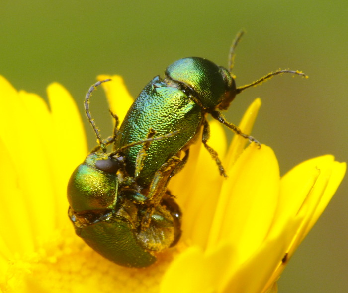 Penso che sia Cryptocephalus samniticus, Chrysomelidae;