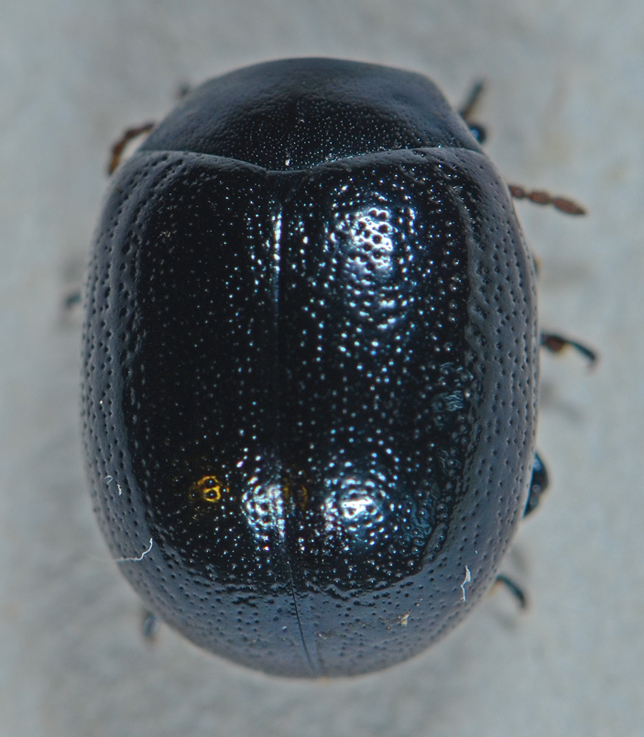 Dovrebbe essere la comune Chrysolina haemoptera, ma la disposizione in file dei punti sulle elitre mi sembra molto più irregolare, perciò l'ho lasciata in sospeso. Lunghezza 7 mm.