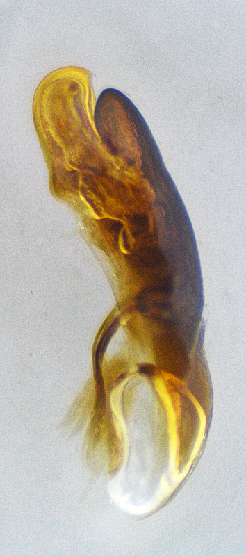 Cryptocephalus scapularis Suffrian, 1848. Cr. exiguus has wrinkled pronotal disc and different shape of aedeagus.