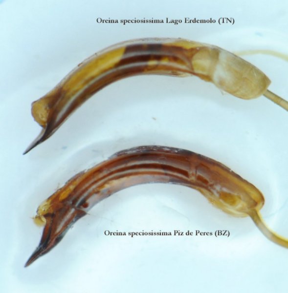 Riporto l'edeago in visione laterale messo a confronto con l'esemplare raccolto in Alto Adige.