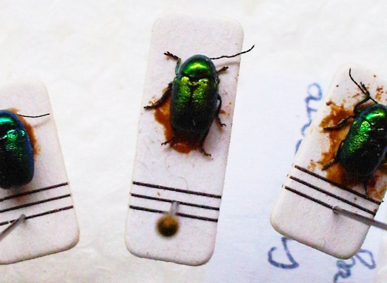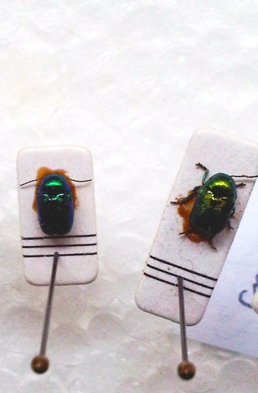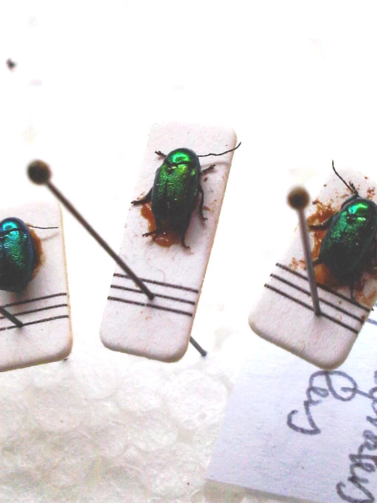 ecco tre piccoli coleotteri! due sono verde smeraldo brillante, il terzo è un turchese brillante.