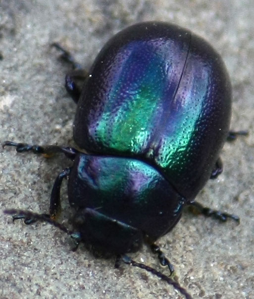 Rivedendo con il senno del poi l'esemplare di Mimmo, devo dire che sia Davide che Giuseppe avevano ragione: credo sia una Chrysolina, e per l'esattezza una Chrysolina (Threnosoma) sirentensis (Meier, 1900). Ciò che mi aveva tratto in inganno è il colore bluastro dominante, ben diverso dal nero degli esemplari di Abruzzo. Se non ho preso una toppa bestiale, ho identificato come tale una femmina cedutami da Iuri Zappi e catturata in Basilicata. Riguardando la foto, mi si è accesa "la lampadina"! Anche il mio esemplare è decisamente blu. Per darvene idea, lo allego qui sotto.