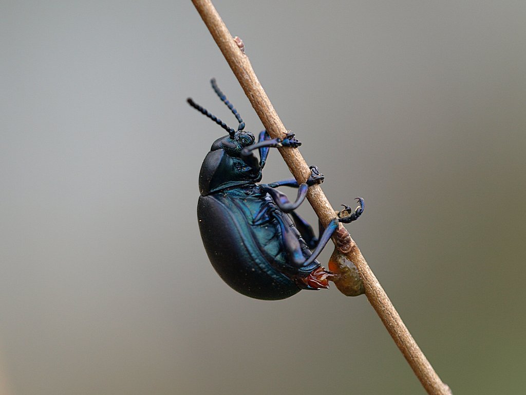 Durante il periodo freddo, la Timarcha nicaeensis è forse il più comune coleottero in attività, almeno qui nel Lazio. E' già ben rappresentato sul Forum, ma non mi pare vi siano foto di esemplari ovideponenti.