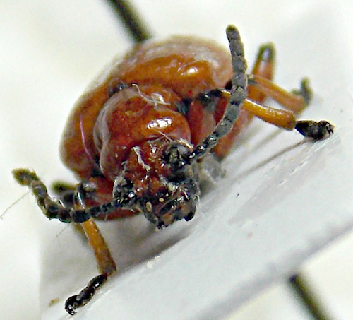 Maurizio Bollino ha scritto: merdigera[/i]. Ovviamente non conosco la morfologia dei genitali, nè le foto permettono un'esame accurato della punteggiatura elitrale e del pronoto, ma il carattere "Front et vertex ......... rouges. Antennes, labre en grande partie, clypéus (généralement), genae, post-genae, labium et gula, scutellum, dessous (à l'exception des deux derniers sternites) noirs." indirizza in questa direzione, mentre in Lilioceris scheideri dovremmo avere "Tête entièrement noire à l'exception des tubercules frontaux et du vertex qui sont rouges. Le clypéus est parfois rougeâtre". Direi che: "Front et vertex ......... rouges. ... labre en grande partie, clypéus (généralement), genae, post-genae, labium et gula ... noirs." e: "Tête entièrement noire à l'exception des tubercules frontaux et du vertex qui sont rouges. Le clypéus est parfois rougeâtre" Mi pare un po' come il bicchiere mezzo pieno o mezzo vuoto. Nel senso che mi pare che alla fine tutta questa differenza di colorazione non ci sia. Bisognerebbe vedere due immagini della testa di esemplari determinati con certezza e capire esattamente quanto effettivamente differiscano, tenendo conto poi della variabilità della colorazione. Io potrei fotografare la testa di merdigera, ma non credo di avere nessuna schneideri. |