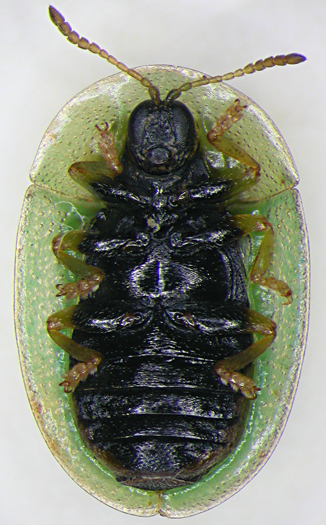 Cassida algirica. Very characteristic, looks like small C. rubiginosa but always without dark spots on suture. |