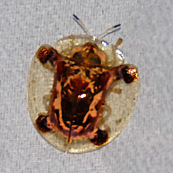 Se vuoi sapere tutto (o quasi) sul gruppo cui appartiene la tua splendida bestiola birmana, ti consiglio di dare un'occhiata a questo ottimo sito di Lech Borowiec, appositamente dedicato ai Crisomelidi Cassidini di tutto il mondo e dove, con un po' di pazienza, si potrebbe arrivare almeno al genere cui il tuo esemplare appartiene.