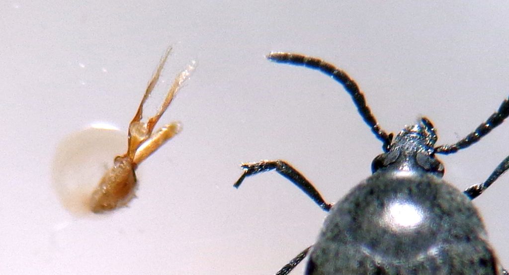 Una volta estratti i maschi sono facilmente separabili dal sericeus per i parameri ben diversi, qui a "cetra", invece che uniti alla base. A casa mia trovo quasi sempre questa specie. La foto centrale mostra l'apparato in vista laterale, edeago incluso.