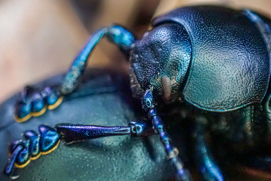 2) i tarsi delle zampe anteriori del maschio, dx aderenti all'elitre della compagna per mezzo di un liquido e sn libero con movimenti longitudinali