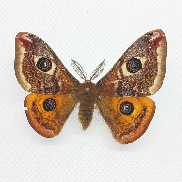 Maschio di Saturnia pavoniella arrivato in cortile grazie ad una femmina nata in cattività, mi ha colpito molto la forma inconsueta delle ali (tra l'altro entrambe le ali sul lato sinistro sono nettamente più piccole).