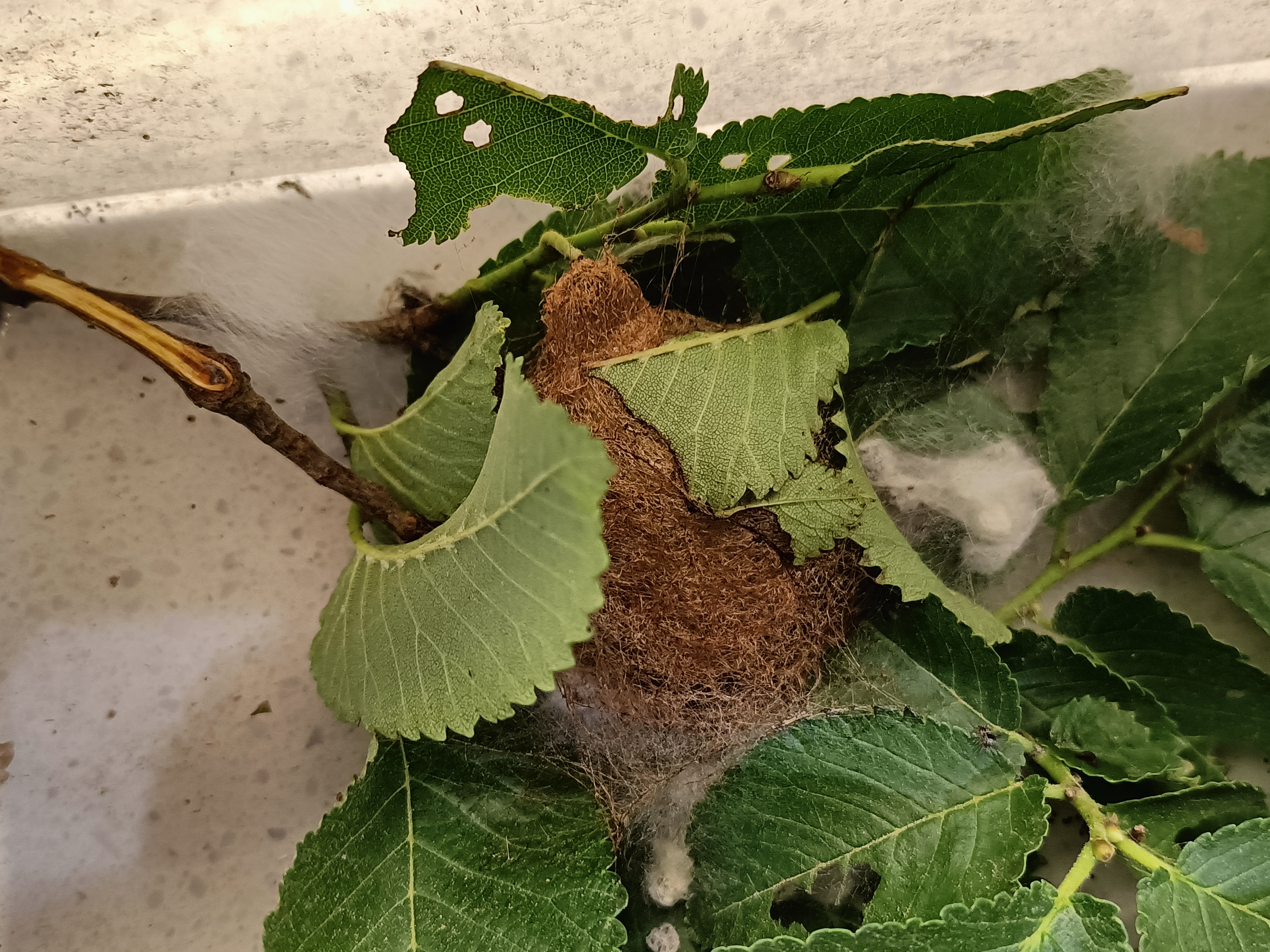 Uno mi era rimasto avvinghiato ai calzoni senza accorgermi così l'ho portato a casa e lo sto nutrendo con olmo. È mutato.