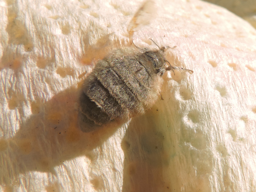 Nella fretta ho dimenticato di inviare l'immagine della nuova deposizione. La cosa singolare è che alcune femmine deponevano ancora avvolte dall'involucro della crisalide.