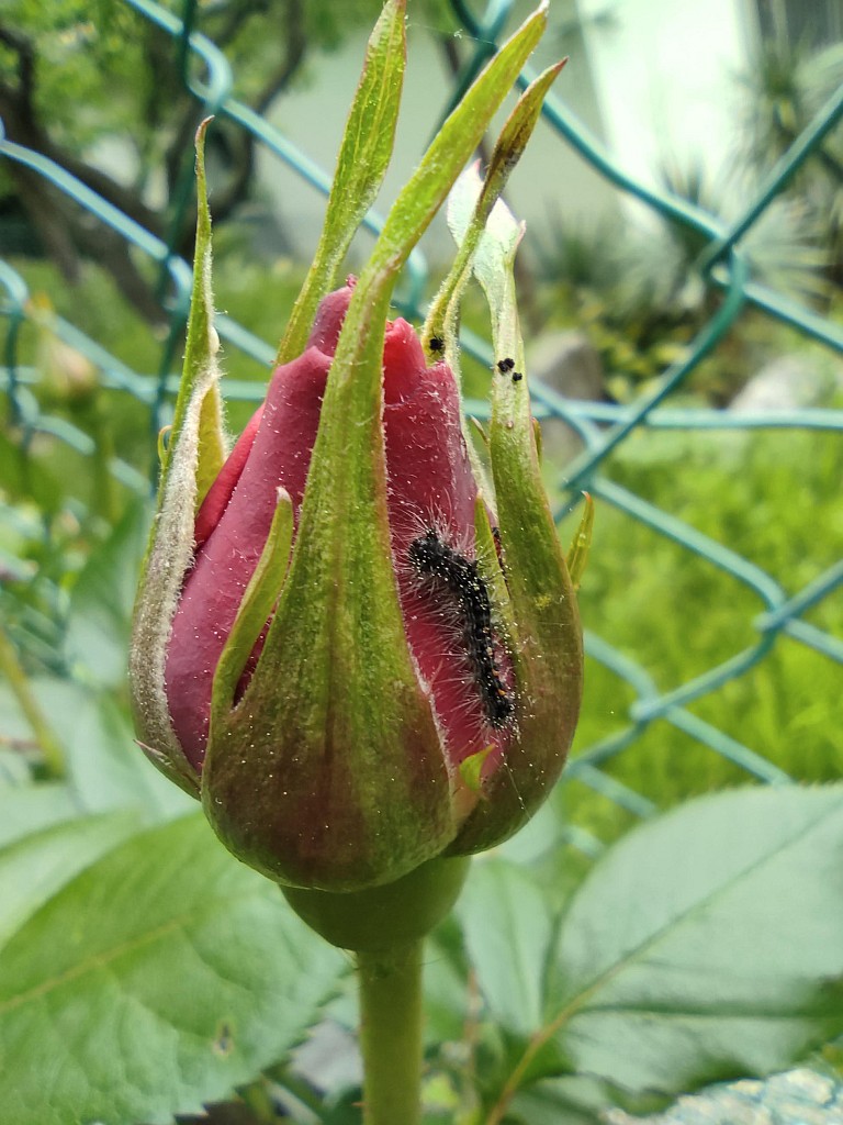 oggi ho trovato questo bruco su un bocciolo di rosa e vorrei capire a che specie appartiene!