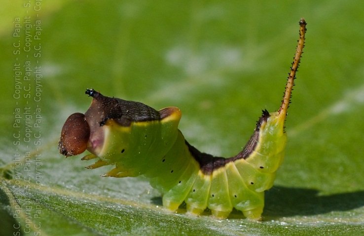 La larva di Furcula sp. generalemente si presenta molto più macchiettata sulle parti verdi.