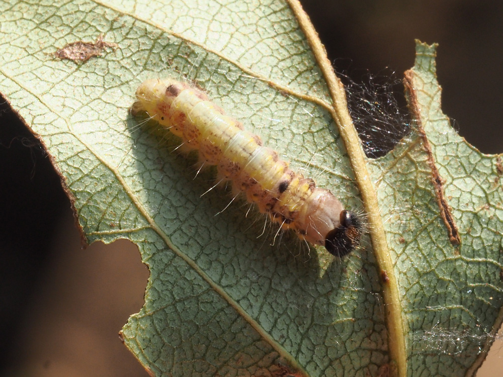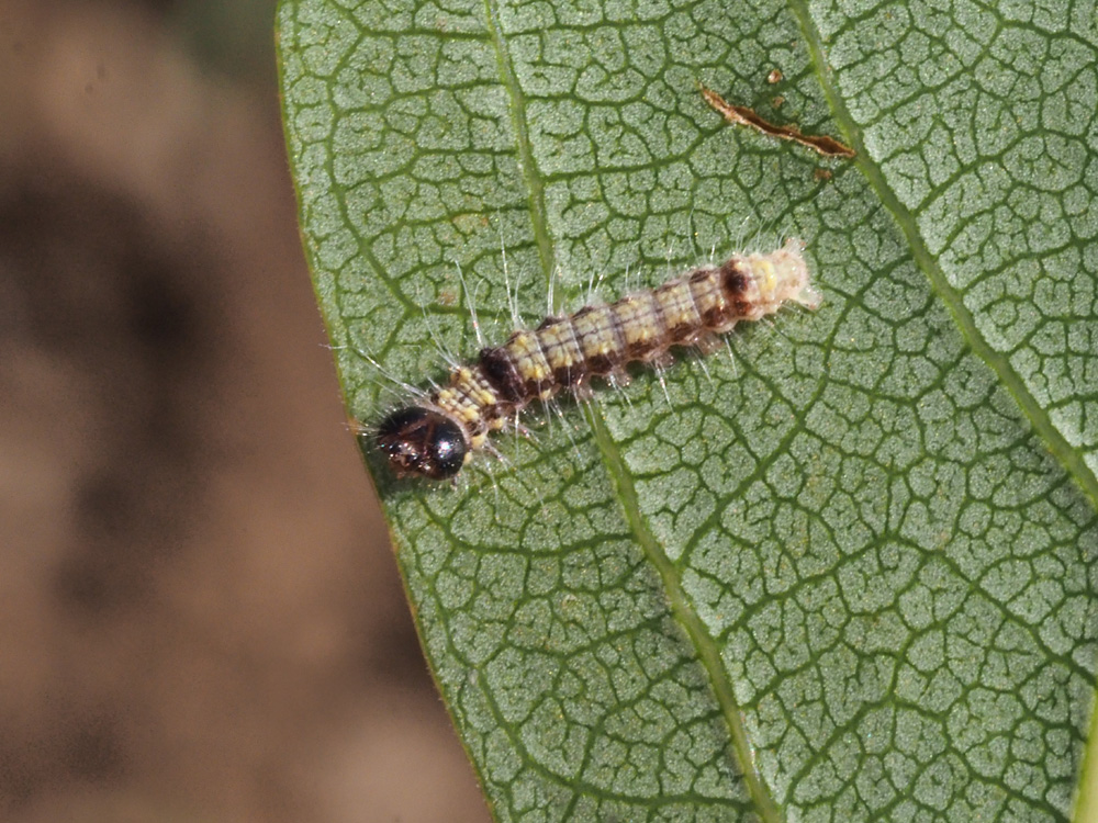 La larva stava nascosta tra due foglie di Populus balsamifera L. coltivato.