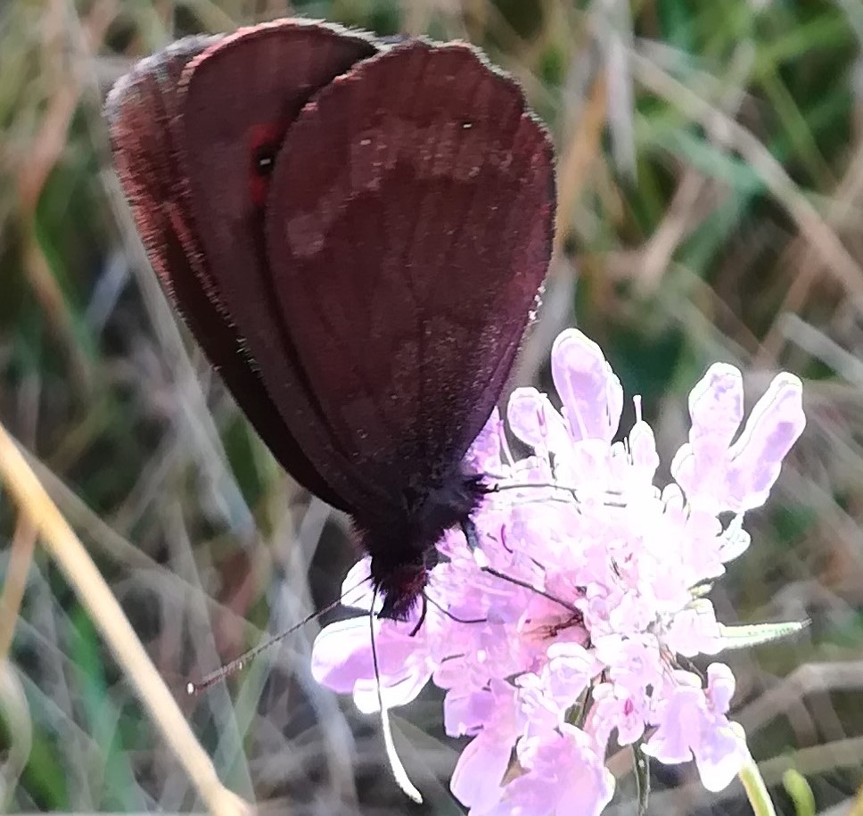 Lepidotteri da identificare (Erebia sp.). La prima foto rappresenta un esemplare diverso da quello nelle altre 3 foto, ma dalla colorazione sembrerebbero appartenere alla stessa specie. Potrei ipotizzare che si tratti di E. aethiops, ma quel "velo" verde-rossastro che si intravede nella pagine superiore del secondo paio di ali nella prima foto e nella pagina superiore del primo paio di ali nella quarta foto mi fa un pò dubitare. Qualcuno potrebbe darmi una mano?