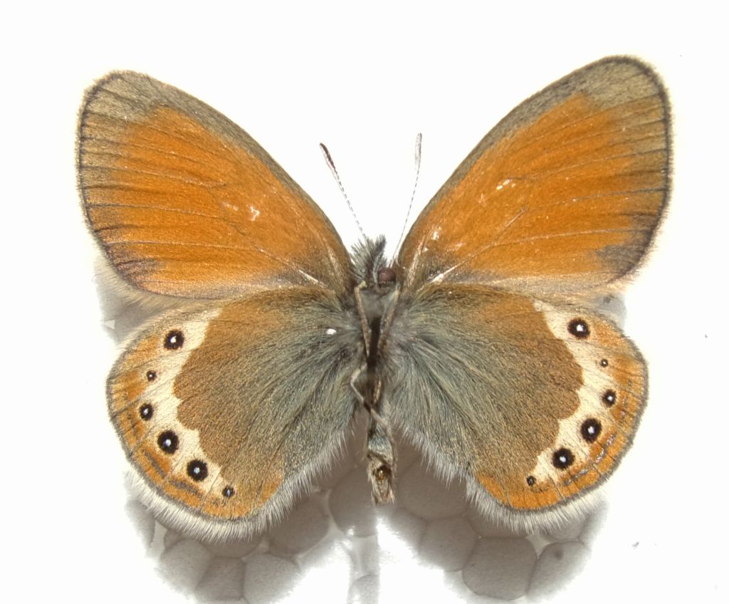 Questo esemplare mi lascia dubbi tra la C. darwiniana e C. gardetta s.s.; tra l'altro vedo che Faunaeur fa della prima una ssp. della seconda. La prima dovrebbe avere gli ocelli della p.i.a.p. cerchiati di giallo e qui mi pare di vedere deboli tracce di essi (cerchi gialli). Il problema è che poco più in basso, nei pressi di Chiappi, a 1825 m ho preso quella che sembra la tipica darwiniana, mentre nel prato fiorito sopra Chiappi, a 1930 m volavano sia esemplari con ocelli ben cerchiati di giallo ed esemplari del tutto riconducibili a C. gardetta s.s.; chi mi chiarisce la posizione dei due taxa? Possibile che nello stesso prato volino due sspp.? Grazie. :hi: