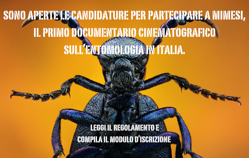 Il giorno 18 Febbraio 2019 sono state aperte le iscrizioni per partecipare alle selezioni per il documentario Mimesi, il primo documentario cinematografico sull’entomologia in Italia