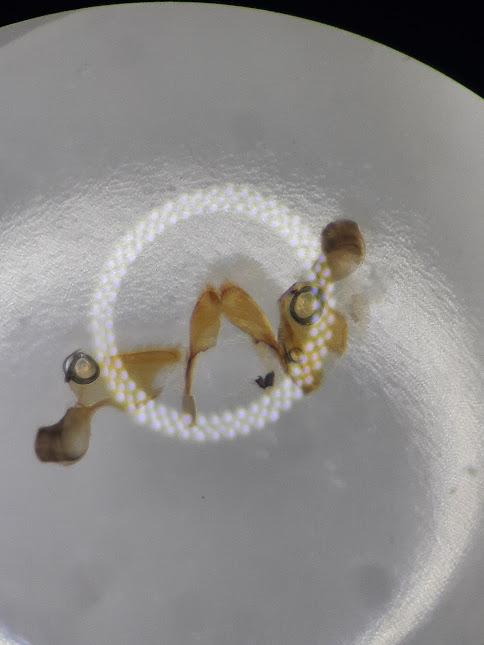 Aggiungo anche le foto dei genitali maschili e femminili, successivamente la spina delle metatibie della femmina che a quanto ho appena scoperto è molto simile a quella di H. ovatus, infine un ultimo carattere per distinguere ovatus da anatolicus, ovvero la forma del capo (piatto nel primo e tondeggiante nel secondo).