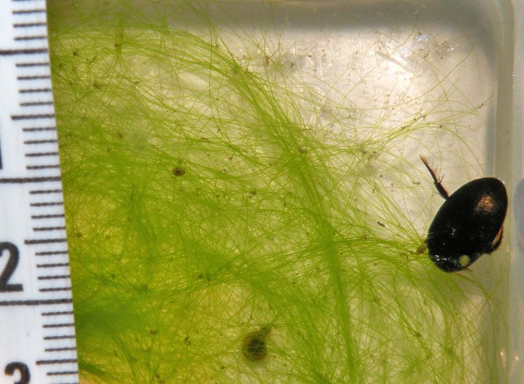 Nell'acqua raccolta il 28-07-11 in un fontanile della RN di Corte Valle Re nella pianura reggiana tra la via Emilia e l'Autostrada del Sole, ho trovato questo coleottero acquatico. Ho provato a studiarlo con le chiavi del Manuale per il riconoscimento dei macroinvertebrati delle acque dolci italiane (di S Campaioli, PF Ghetti, A Minelli, S Ruffo) e sarei arrivato alla famiglia Dytiscidae.